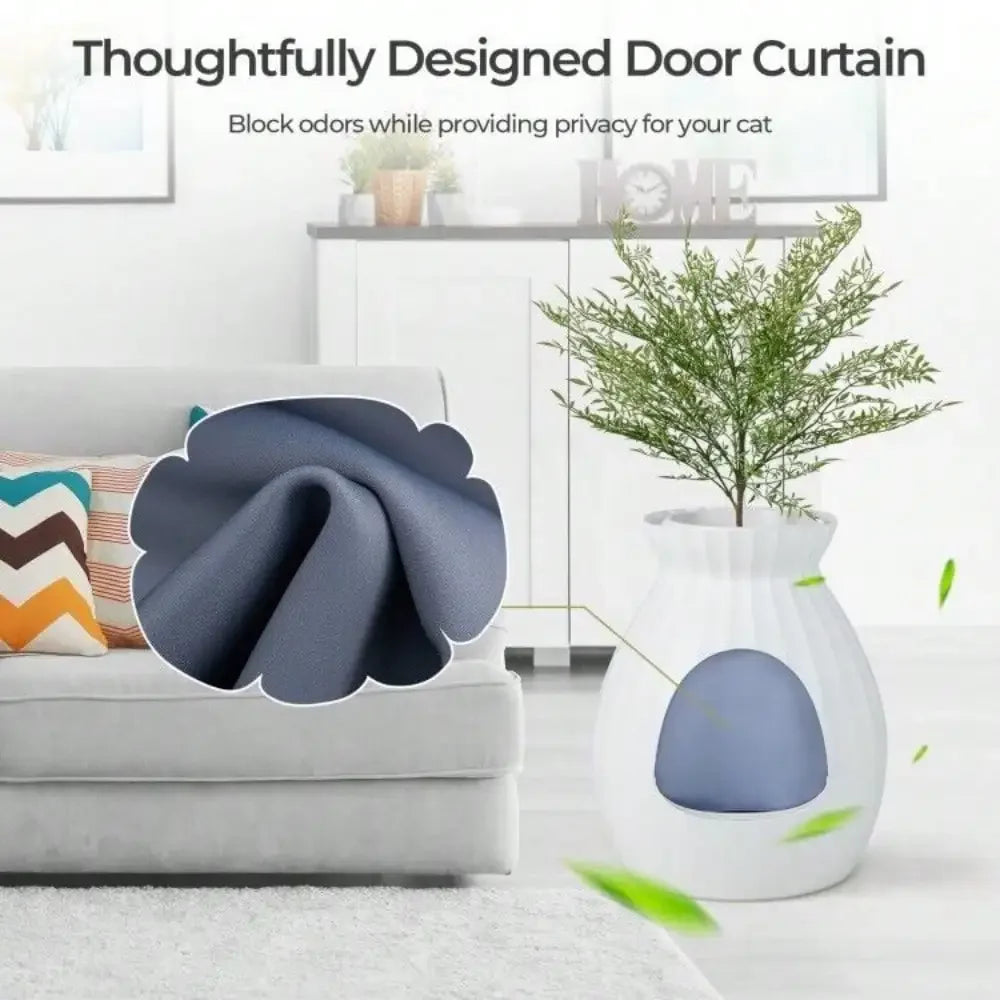 - Innovative design doubles as décor: a concealed litter box with a decorative artificial plant and glossy pebbles to enhance any living space.